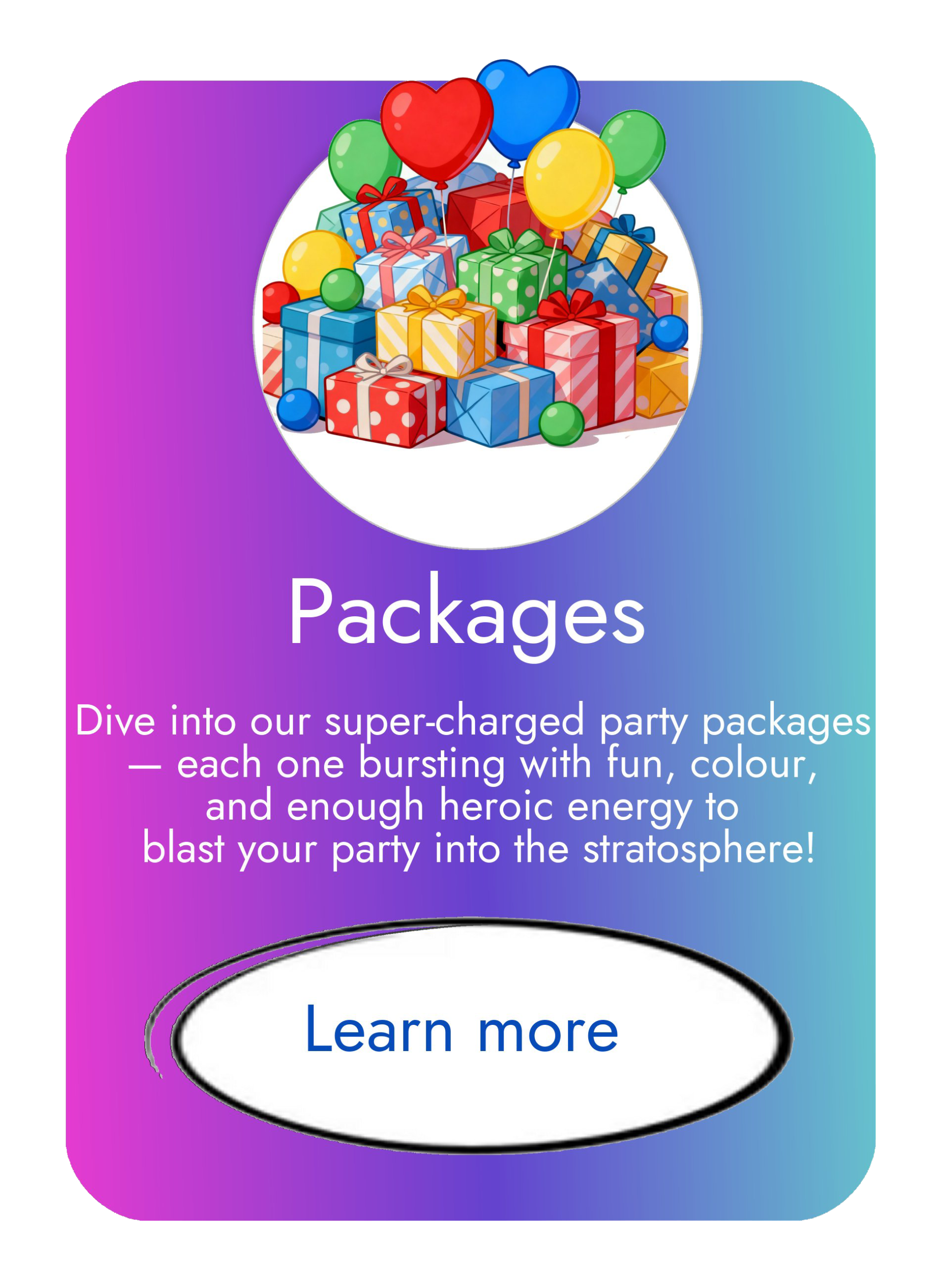 Let us swoop in, bring the laughs, manage the chaos, and turn your child’s party into the kind of hero-level fun they’ll talk about for ages.