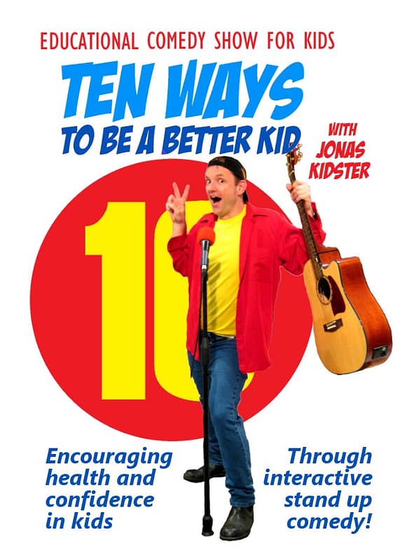 When the kids are seated and ready, Jonas Kidster hits the stage with a fast-paced, laugh-out-loud, 30 minute comedy show packed with cheeky heckling and rapid-fire jokes about babies, pets, and grown-ups. His popular educational show Ten Ways To Be a Better Kid mixes big laughs with feel-good messages and has already been enjoyed by hundreds of kids in NSW schools. He’s the Kids Comedy Entertainer that keeps kids laughing while parents quietly applaud.