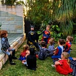 FruitBatman is a long-time party favourite, arriving with his backpack, pocket-belt, and a very serious commitment to superhero business — delivered with plenty of laughs along the way. Inspired by movies, cartoons, and a certain wonderfully earnest decade of television, he leads superhero training using ropes, gadgets, baddie pictures, and an illustrated storybook, all punctuated with big reactions, silly surprises, and classic POW! BAM! moments. The birthday hero is rewarded with a themed mini goodie bag, because every successful mission deserves a ceremonial handover. It’s colourful, energetic, and proudly a little bit camp — the kind of hero work that feels suspiciously familiar if you ever watched television where villains waited politely to be caught.